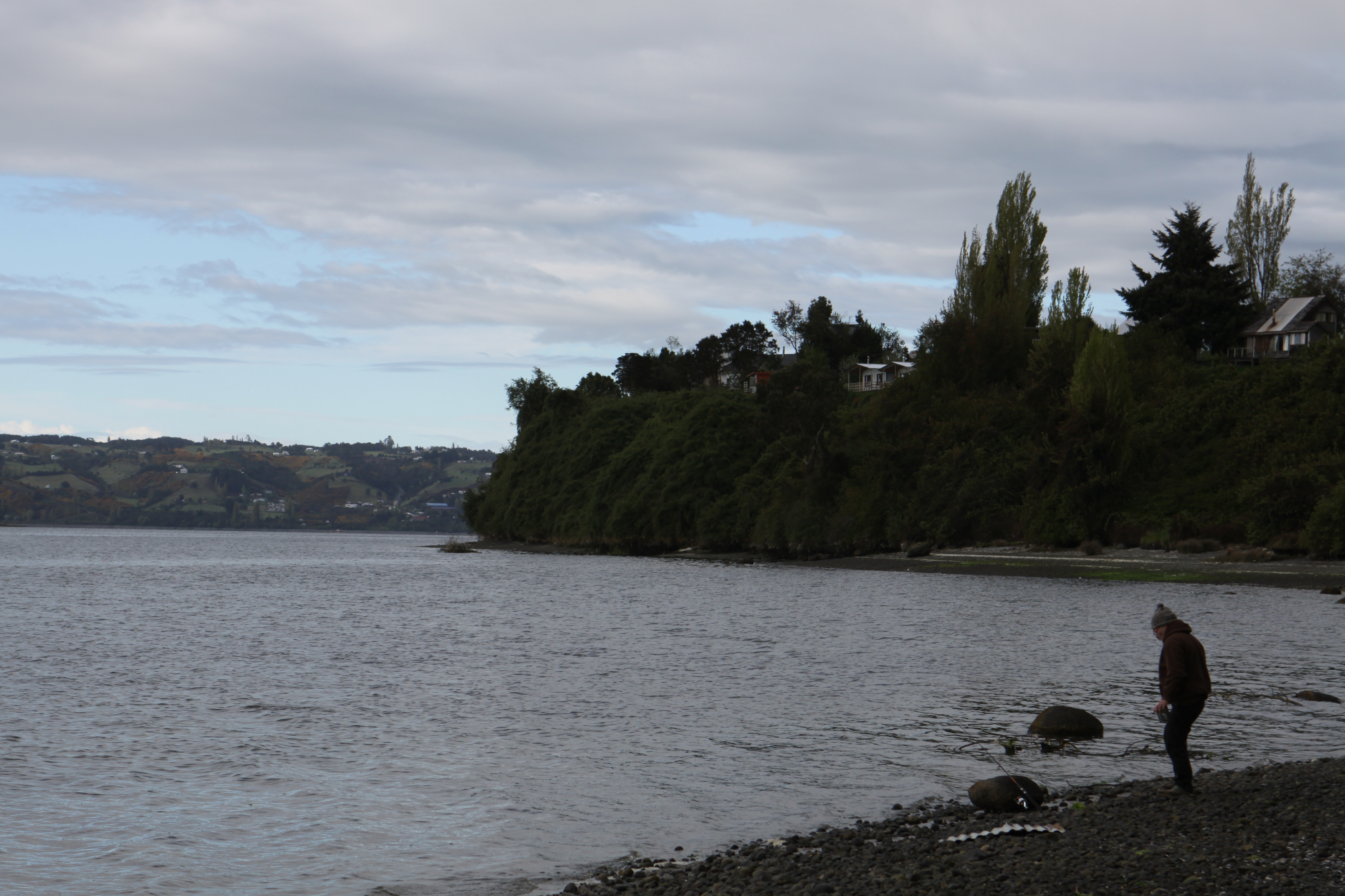 Ayer llegamos a Castro. Viajamos en autobús desde Valdivia a Puerto Mont. Atravesamos estos paisajes chilenos que te enamoran: la enorme cordillera, extensos camposde prados y bosques, lagos con infinidad de aves acuáticas….. conforme nos alejamos de Valdivia nos fuimos despidiendo de la Selva Valdiviana, aunque en Chiloé vamos a reencontrarnos de nuevo con ese ecosistema. Lamentamos no poder saborearloa nada más que desde la mirada desde la ventanilla de nuestro transporte.