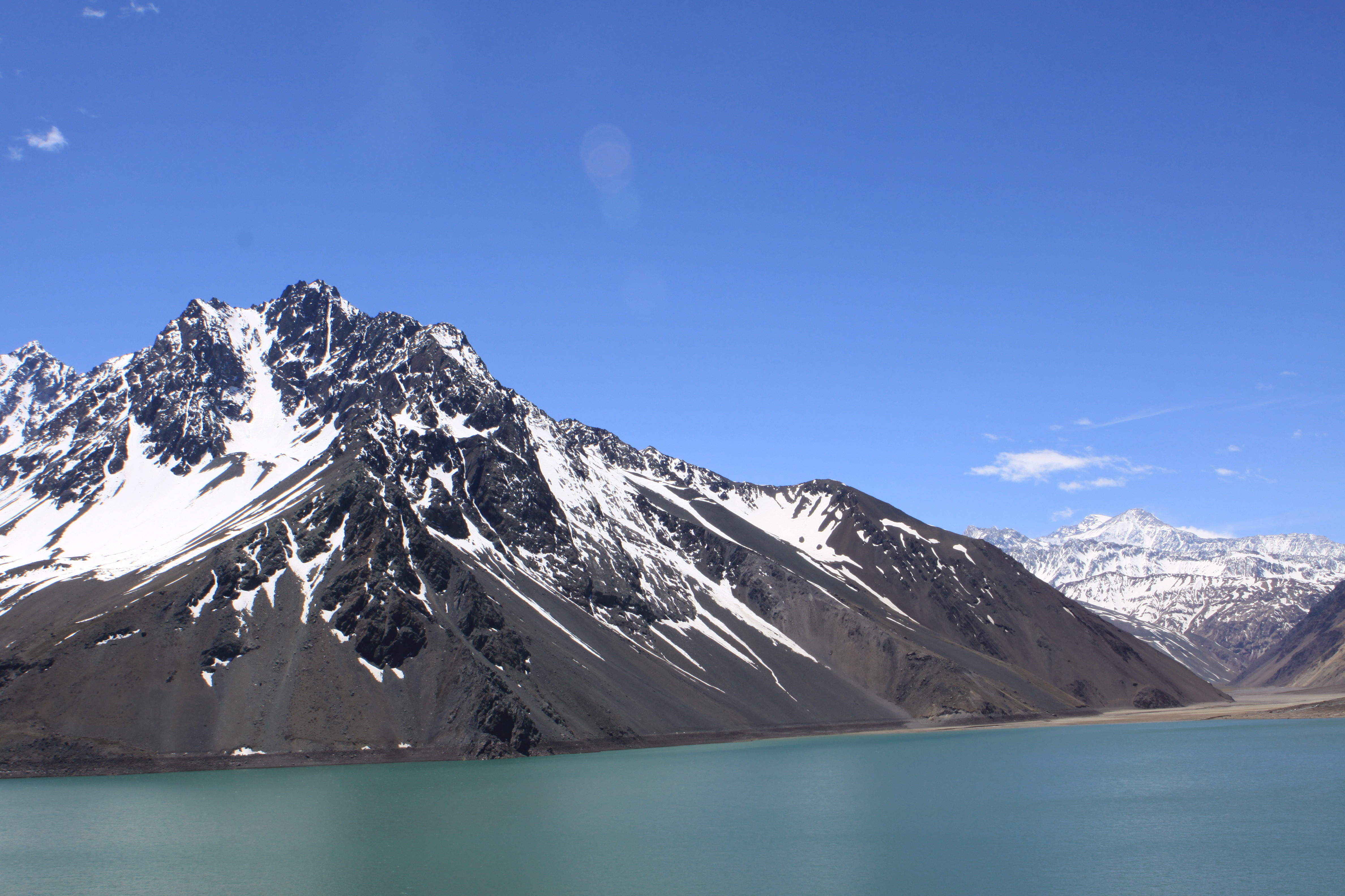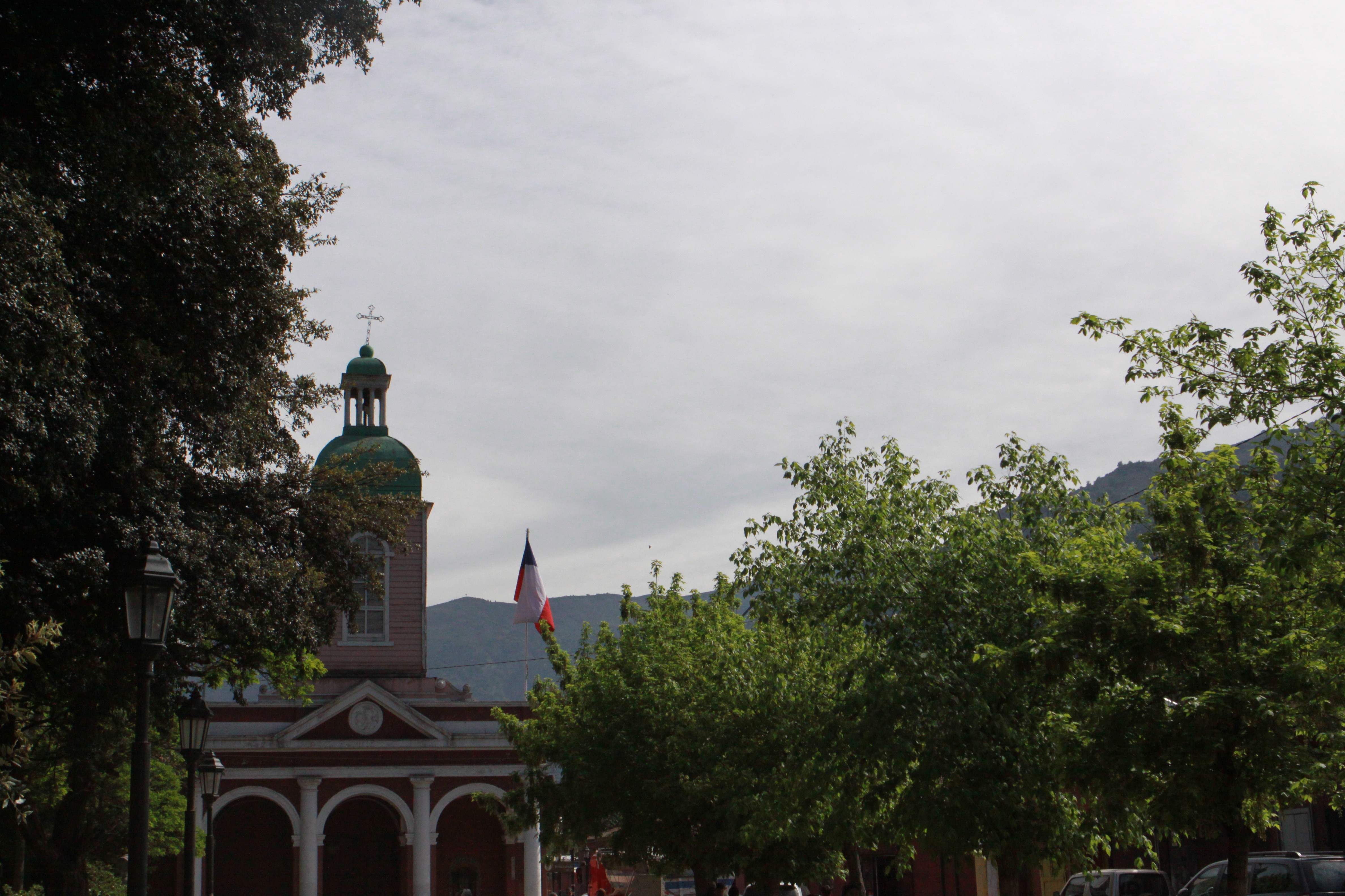 El primer día decidimos realizar un tour al Cajón del Maipo. Tras recorrer la carretera llegamos bajo un anfiteatro de montañas en cuyo alto observamos bloques de hielo y a nuestro alrededor el fuerte impacto de una minería de explotación a cielo abierto. El embalse de Yeso, de aguas azules turquesa, es la principal fuente de abastecimiento de agua potable de la ciudad. Al dejar la gran urbe hemos atravesado grandes extensiones de viñedos: el vino es una apuesta del país para su desarrollo, tanto como lugar de destino turístico como producto de exportación muy valorado. La guía nos va orientando a lo largo del camino, como al narrarnos al llegar a una curva, que aquí fue el lugar donde de desarrolló el último atentado fallido que sufrió Pinochet. Una de las paradas es a un monumento animista muy venerado por una población que no abandona sus ritos tradicionales de ofrendas y peticiones al alma. Finalmente volvemos a la ciudad entrando por un antiguo barrio residencial: Nuñoa.