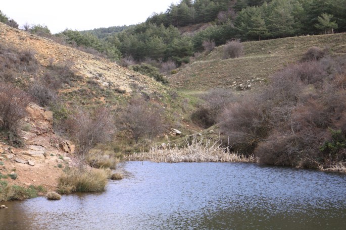 En las balsas me resulta curioso contemplar como se mueven en plena actividad una pareja de cangrejo de río. Las bermejuelas también están activas en la zona donde el riachuelo penetra en el pequeño embalse que retiene el agua, la balsa que en la que durante el verano abrevaran las vacas cada mañana cuando regresan de comer en los pastos y hacen una parada antes de ir a la zona de sestear en la era del pajar del Portichuelo, que poco a poco cada año, conforme el tejado se desploma comienza a ser una ruina..
