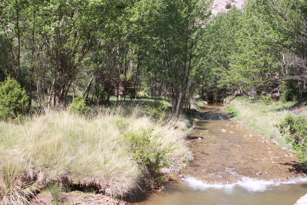 Impresiona la soledad rota por el trino de innumerables pájaros. Contemplamos la aspereza de las laderas de roca que bordean el río, en contraste con el verde de cauce jalonado por viejos troncos de chopos sobre los que se elevan vigorosas vigas que brotaron tras su último poda hace unas décadas. No quiero extenderme en explicar la naturaleza de este lugar, cuya descripción con el máximo rigor podéis encontrar en varios artículos publicados en el Blog del Parque Cultural del Chopo Cabecero.