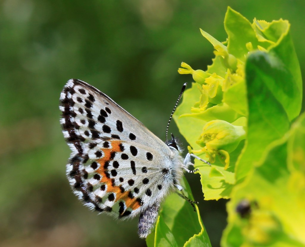 En la primavera del 2022 tropecé en el camino hacia el nacimiento del rio Pitarque con varios ejemplares de esta mariposa con esa llamativa banda postdiscal naranja en el reverso de su ala posterior. Mi primer encuentro con esta especie fue hace unos dos años en que identifique un ejemplar durante la realización del transecto de eBMS en Castelfrío.