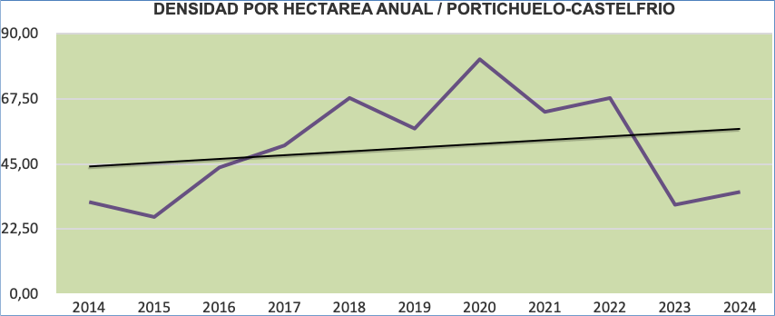 Para la campaña del año 2024 obtenemos autorización del INAGA. para la realización de los transeptos localizados en el término municipal de Corbalán, en el paraje de la Casa Grande de Escriche, y en el término municipal de Escorihuela, paraje de Portichuelo en el monte de Castelfrío, Lugar de Interés Comunitario..