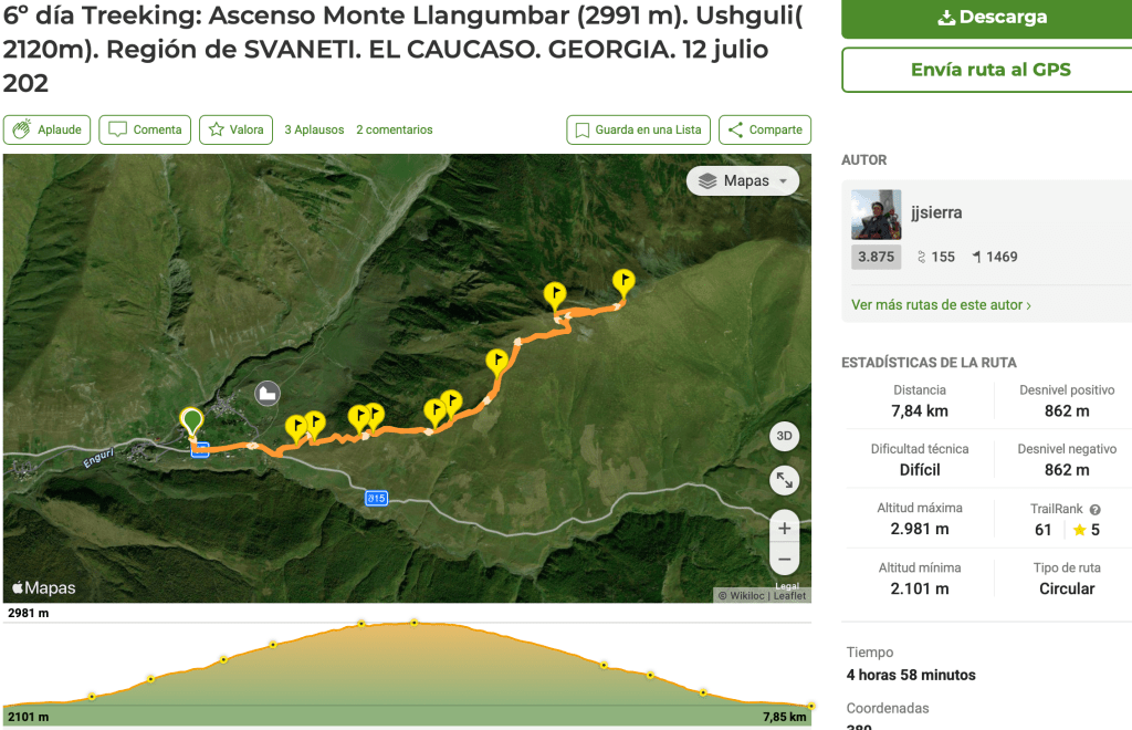 Puede verse las características del recorrido en WIKILOK. De nuevo en el perfil que nos ha autorizado divulgar nuestro compañero Jesús Sierra.