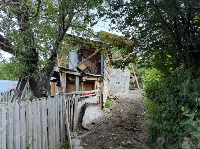 Son una una familia en la que viven tres generaciones, la última niños pequeños, uno de ellos bebe. Las obras de rehabilitación de la casa la realizan ellos mismos, como ocurre en la mayoría de las casas que hemos visitado en el viaje. Utilizan como material principal la madera. Esta actividad auspiciada por el incipiente turismo rural, incrementado desde que puede viajarse al país sin visado, al menos desde la Unión Europea, complementa los ingresos económicos al trabajo de la granja centrado en sembrar patatas y hortalizas, segar el pasto para las vacas y ordeñarlas para obtener leche con la que hacer quesos, cuidar los cerdos y también las colmenas que están distribuidas a lo largo de toda la finca y proporcionan miel. Vemos también algunas parras con las que elaboran vino y, como no, orujo artesanal, chacha.