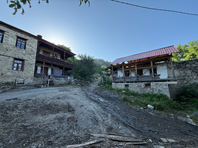 En esta aldea se ubica la casa de huéspedes donde nos hospedaremos las dos últimas noches del viaje. Es una granja de cultivo ecológico, que ofrece alojamiento. Su proyecto esta financiado por la Unión Europea, Austria y Suecia. Es un lugar acogedor y quienes nos dan hospedaje nos muestran gran hospitalidad, aunque no podemos intercambiar palabras en georgiano con ellos, el ingles facilita la comunicación para distribuirnos en las habitaciones y fijar la hora de la cena y el desayuno de la mañana.