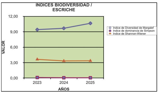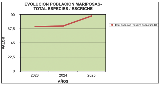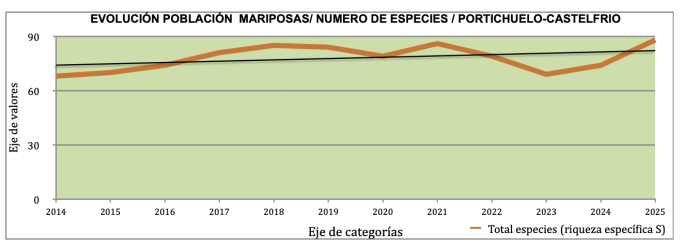 La estadística indica estabilidad en la biodiversidad de lepidópteros a lo largo de estos años. Cuanto mayor sea el número de especies y la equidad en su distribución, mayor será la diversidad alfa de una comunidad.