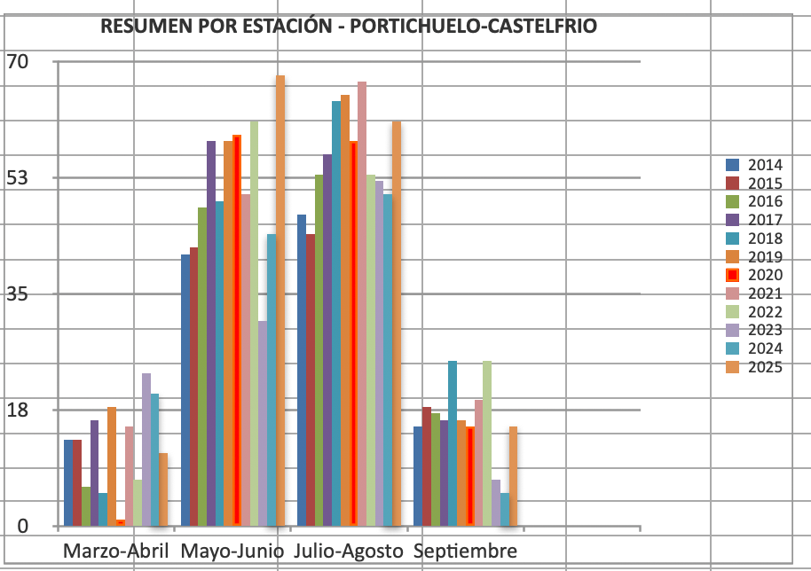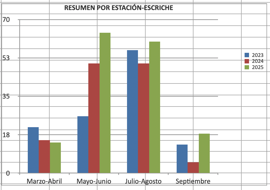 Se han realizado 21 visitas con recogida de información, entre el 1 de Marzo y el 30 de Septiembre tanto en el transepto de Castelfrio como en el de Escriche.