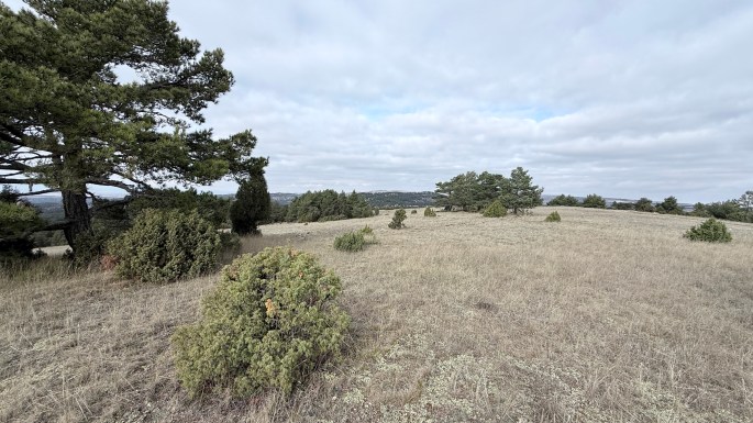 Aquí las cimas se denominan cabezos. Cumbres abombadas, con un sustrato esquelético de calizas sin apenas capa de suelo fértil, en donde sobrevive una comunidad de vegetación abierta, dominada por las sabinas y enebros sobre un tapiz de gramíneas, la paramera. Se desgarran en profundos barrancos cuyas laderas acumulan humedad y proporcionan umbrías que protegen del inmisericorde sol del estio, cobijando las densas masas de pinar. Aquellos en los que el arrastre por las torrenciales lluvias ha modelado la posibilidad de extender bancales, todavía se siguen cultivando de cereal, en donde las espigas se abren camino entre las piedras que el arado arranca al labrar. Piedras, que con paciencia se van apartando en las orillas, donde montículos de ellas sirven de guarida a la fauna.